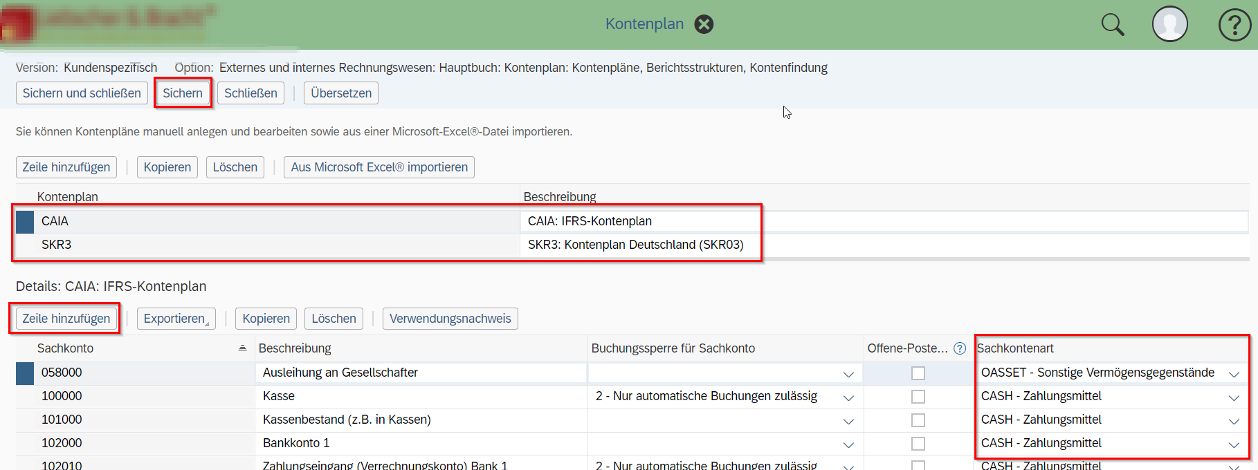 - In „Kontenplan bearbeiten“ können neue Sachkonten für die jeweiligen Rechnungslegungswerke hinzugefügt werden