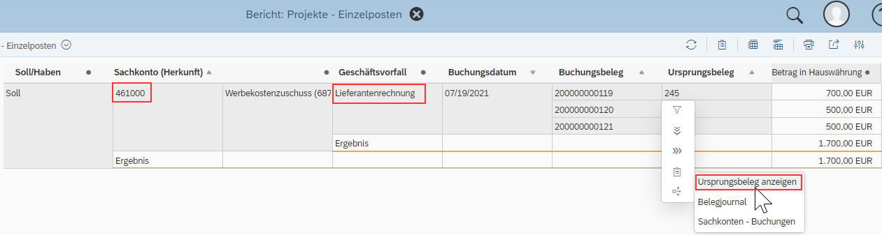 Mit den folgenden Berichten können Sie sich Lieferantenrechnungen, die auf ein Projekt gebucht wurde...